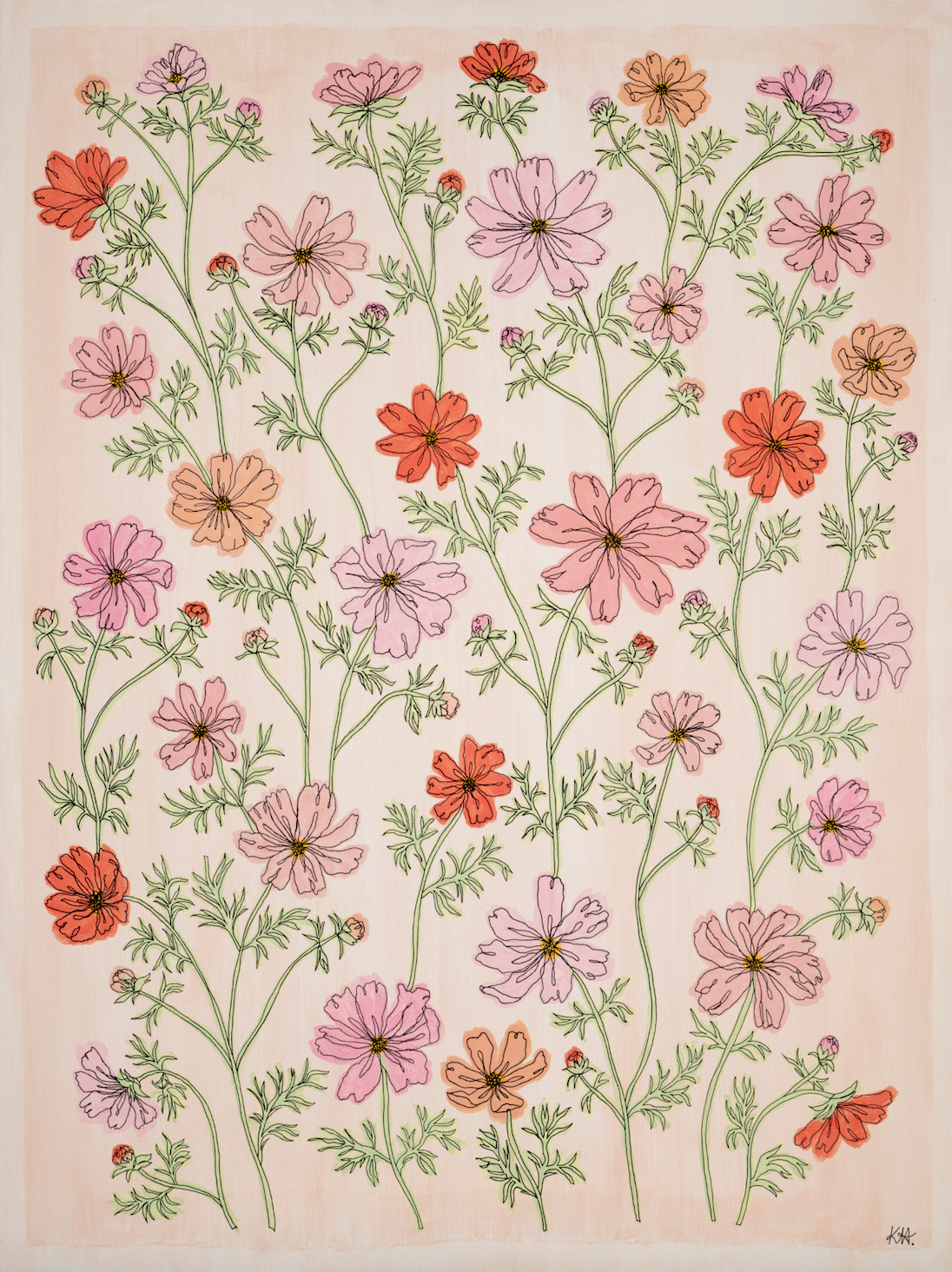 A mural of cosmo flowers and colors that make this a very happy home in Ventura, CA.
